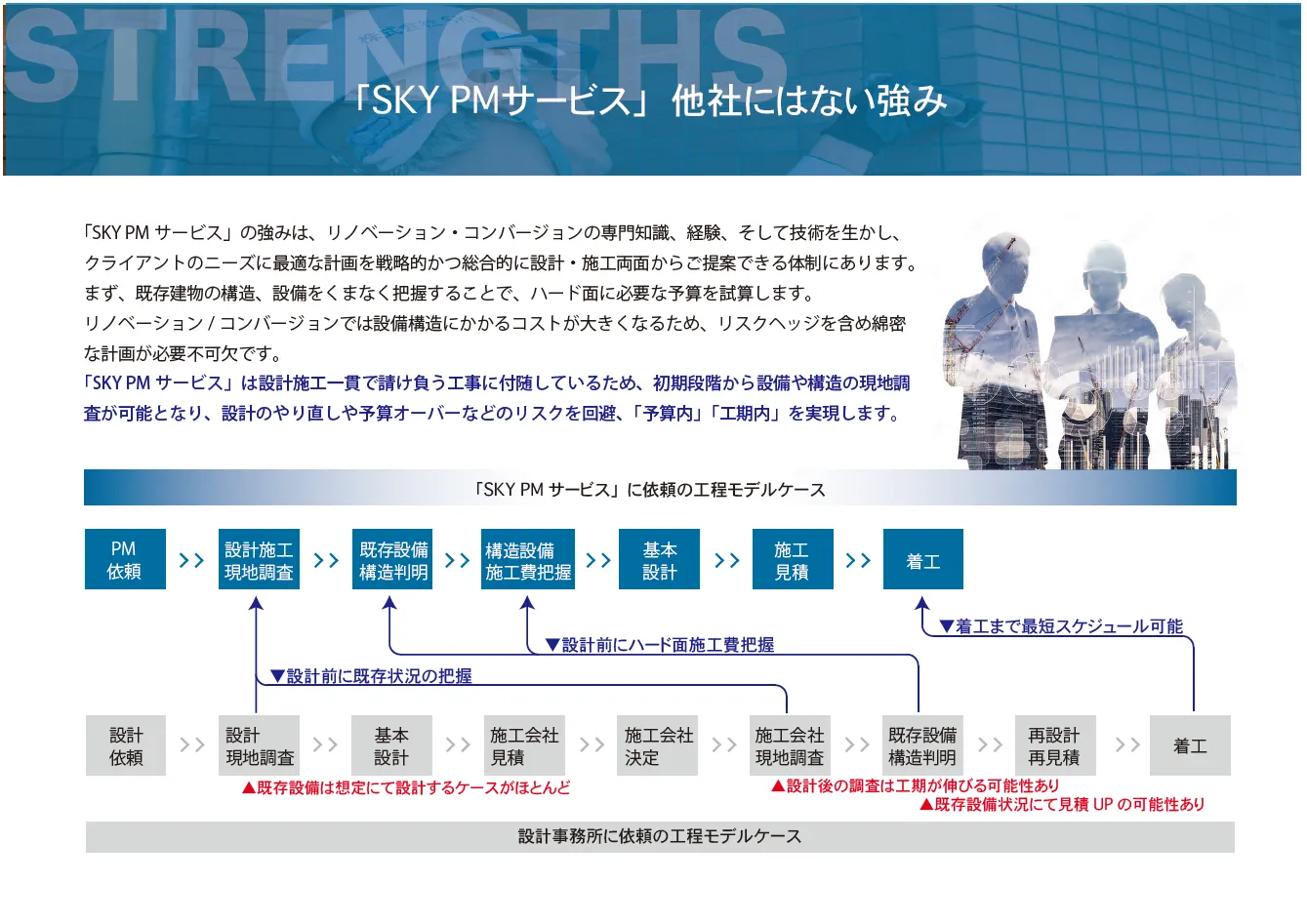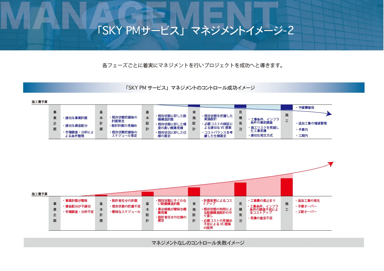 • 徹底したコスト管理及び工程管理を確実に進めます。